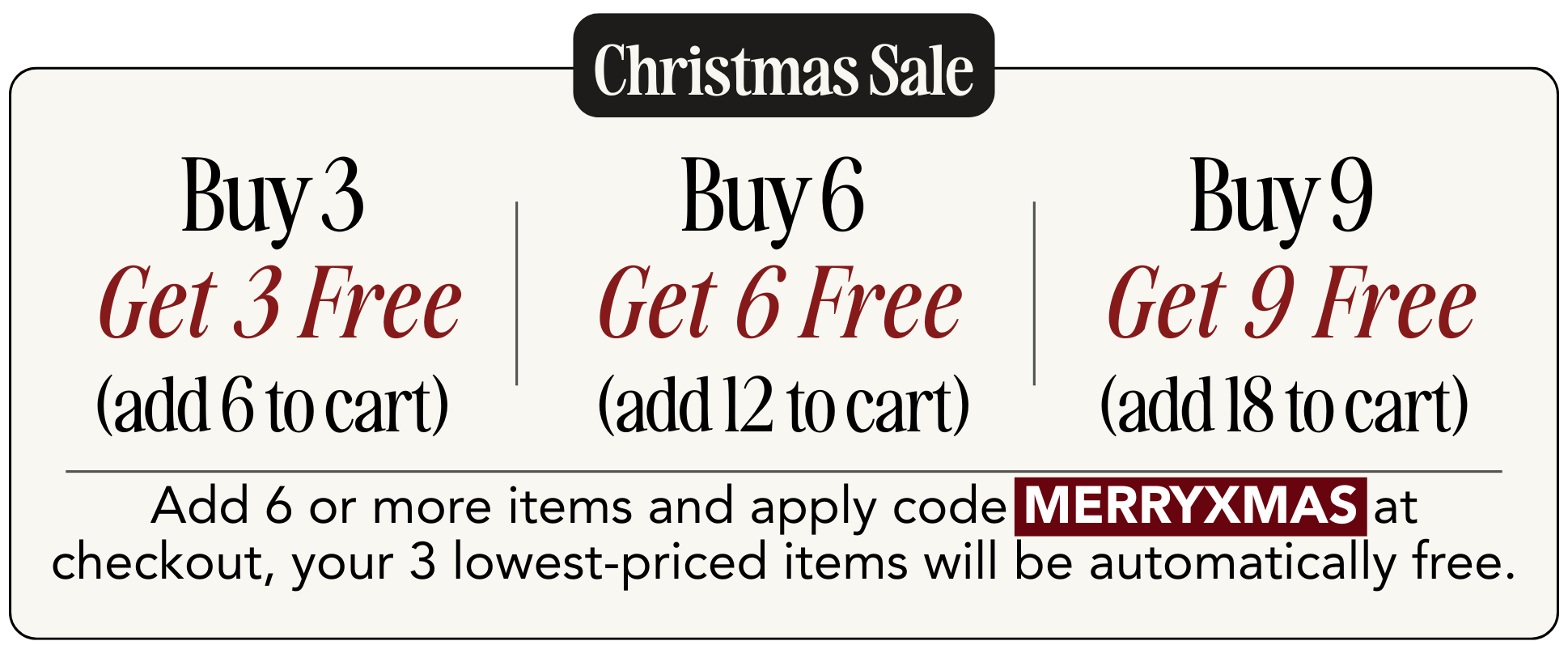 • Buy 3, Get 3 FREE with code MERRYXMAS
